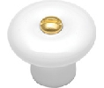 Porcelain Cabinet Knob Ice White, 1-3/8" Diameter, 1-3/8" Projection, Polished Brass